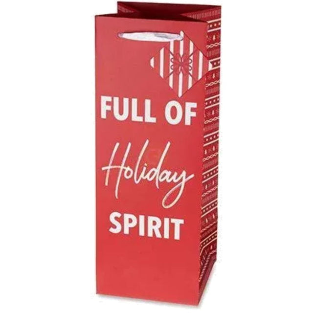 This Cakewalk Wine Bag – "Full Of Holiday Spirit" isn’t just a bag—it’s a festive mood in gift form. The vibrant design splashes your favorite holidays onto every side: think colorful ornaments, ribbons, and holiday-themed cheer printed over a sturdy wine-sized tote. It’s roomy enough to hold most standard bottles securely, and the ribbon handles make it easy—and elegant—to carry.