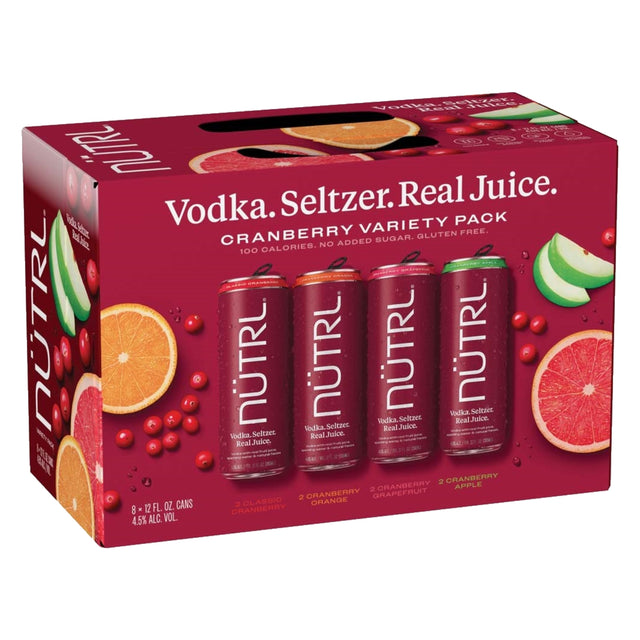 NÜTRL Vodka Seltzer brings together vodka, sparkling water, and real fruit juice for a refreshingly light and crisp canned cocktail experience. Each 355 mL can delivers 100 calories, 4.5% ABV, zero added sugar, and is gluten-free—perfect for those craving uplifting flavor without unnecessary sweetness.