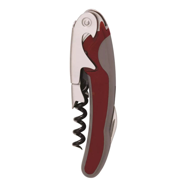 Classic design simplified. The Truetap Double‑Hinged Waiter’s Corkscrew in burgundy is a no-nonsense tool built for everyday use—with a dash of color.