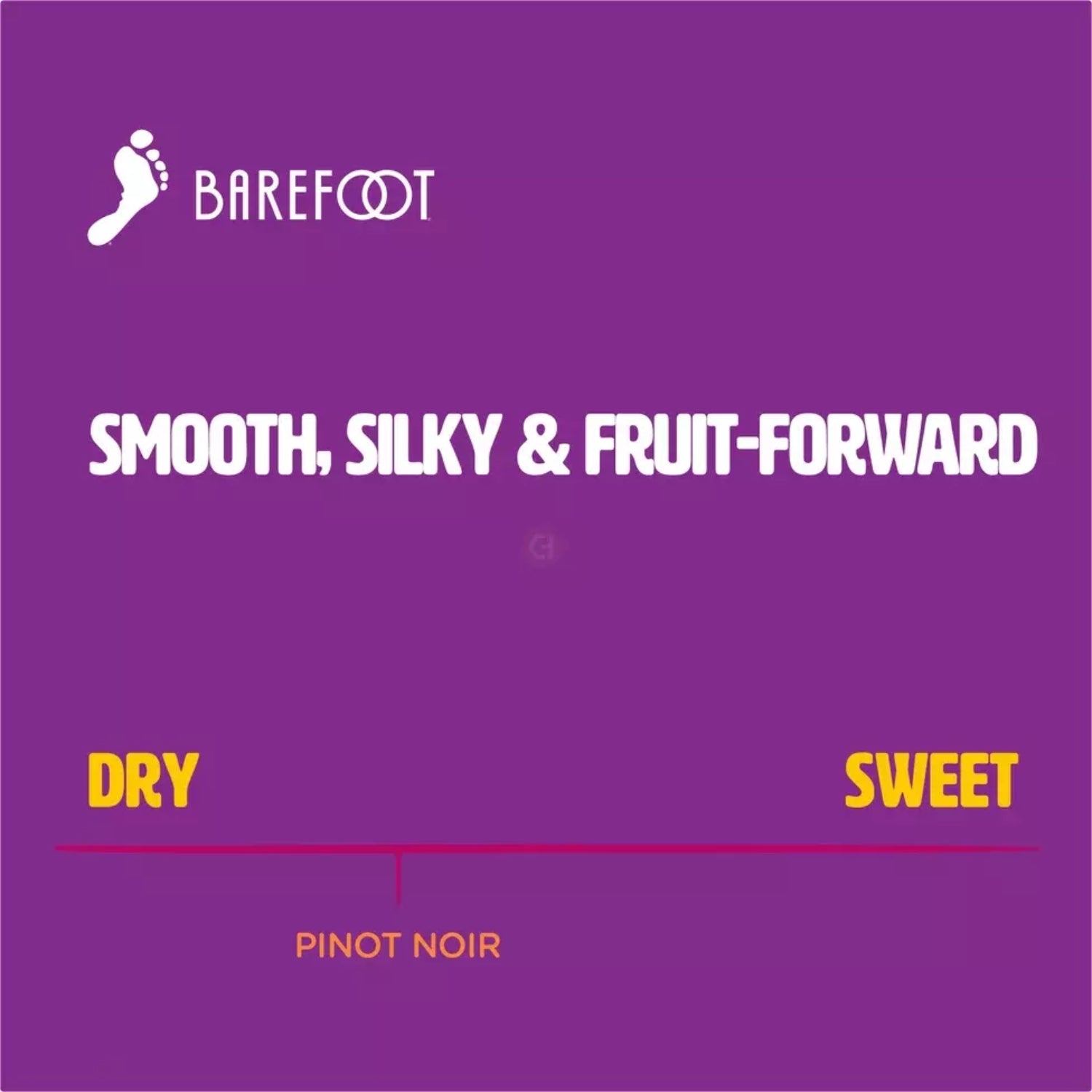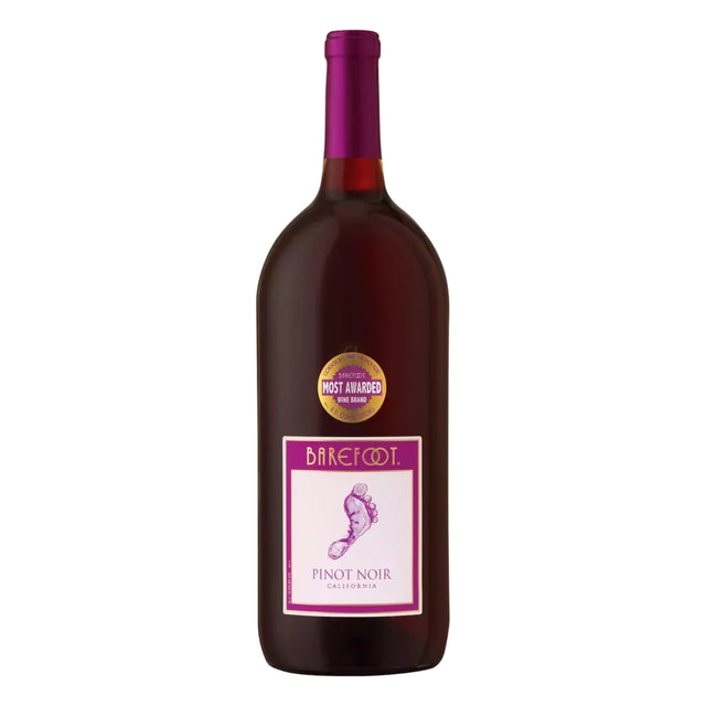 Barefoot Pinot Noir Red Wine features fruit forward notes of black cherry and wild raspberry in a large 1.5 L red wine bottle. With light brown spice aromas and a silky smooth finish, this California red wine is ideal for backyard barbecues and casual gatherings with friends. Best served slightly chilled or at room temperature, this medium bodied Barefoot wine pairs perfectly with a wide variety of foods. The 1.5 L wine bottles are perfect for larger gatherings. This Pinot Noir wine comes from Barefoot, the most awarded wine brand in US competitions.