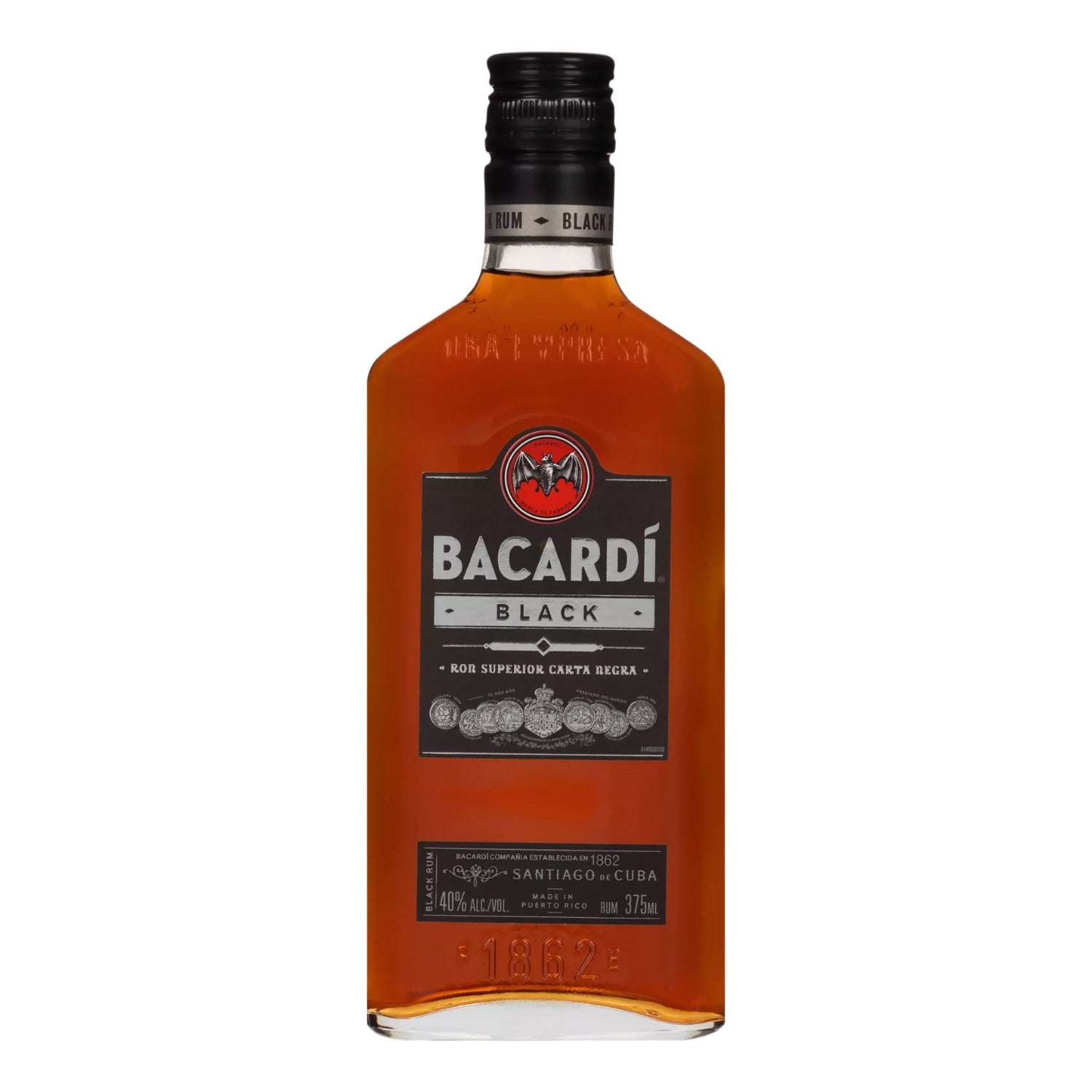 BACARDÍ Black rum is a medium-bodied black rum, crafted with passion by the Maestros de Ron Bacardí. Its rich, dark flavors develop in heavily charred oak barrels and are shaped through a secret blend of charcoals. Some might call it black magic.