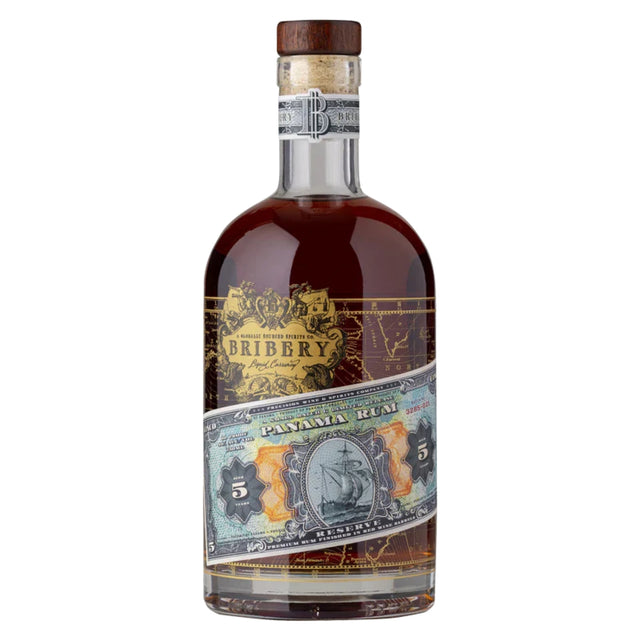 Bribery Panama Rum brings clean, refined character with five years of aging in ex‑bourbon casks and a finishing touch in red-wine barrels. It’s not about sugar-coated sweetness. Instead, it skews toward savory and bold.