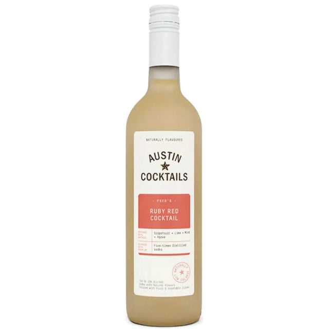 Austin Cocktails Fred’s Ruby Red Cocktail, named after the Co-founders' Grandpa Fred, is batched with 5X-distilled corn-based vodka, luscious, red ruby grapefruit, juicy lime, crisp mint and a splash of organic agave nectar. This refreshing, prepared cocktail showcases the finest and brightest ingredients and as an added bonus is naturally low calorie, not so sweet and contains no artificial flavors. This pre-mixed craft cocktail comes to the party or pool ready-to-serve and is the perfect alternative to serve your guests or take to your host. All you have to do is simply shake and pour over ice!