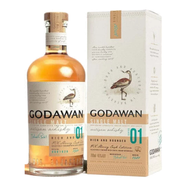 Godawan Series 01 Rich and Rounded Indian Single Malt Whisky is an exquisite expression born from Rajasthan’s arid landscapes and legendary spirit. Crafted from six-row barley suited to desert conditions and aged in PX sherry casks—with a portion finished in barrels infused with rare Indian botanicals—it emerges as a deep golden whisky layered with plush complexity .