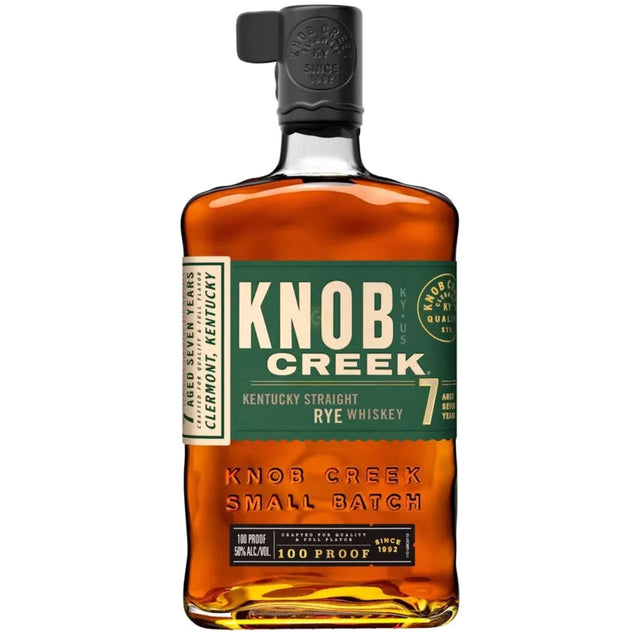 Experience the well-earned, full flavor of Knob Creek 7 Year Old Kentucky Straight Rye Whiskey. This rye whiskey is patiently aged for seven years in deeply charred barrels and bottled at 100 proof for the signature Knob Creek full flavor. This full-bodied Kentucky features balanced black pepper, sweet vanilla and caramel notes with lingering oak and rich spice on the finish. Enjoy Knob Creek 7 Year Rye neat, on the rocks or in your favorite cocktails. This bottle of whiskey is 50% alcohol by volume and should be enjoyed responsibly. Explore the entire Knob Creek Family for yourself and discover what whiskey was meant to be.