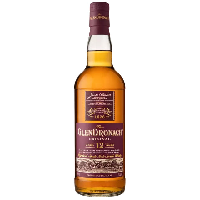 GlenDronach 12-Year-Old epitomizes our unyielding dedication to the mastery of our craft. Matured in fine Pedro Ximénez and Oloroso sherry casks from Andalucía in Spain, this richly sherried Highland Single Malt Scotch Whisky presents smooth vanilla, soft fruits and a memorably long, nutty finish, for which it has become renowned. This smooth scotch is bottled at 43%, non-chill filtered and natural in colour.
